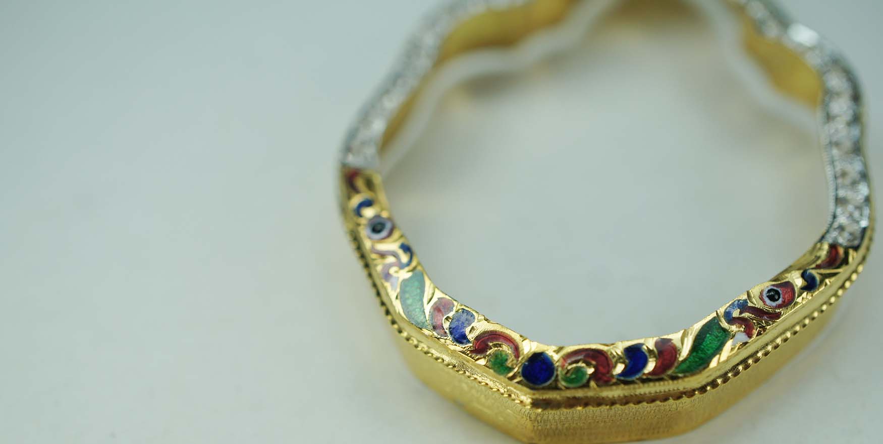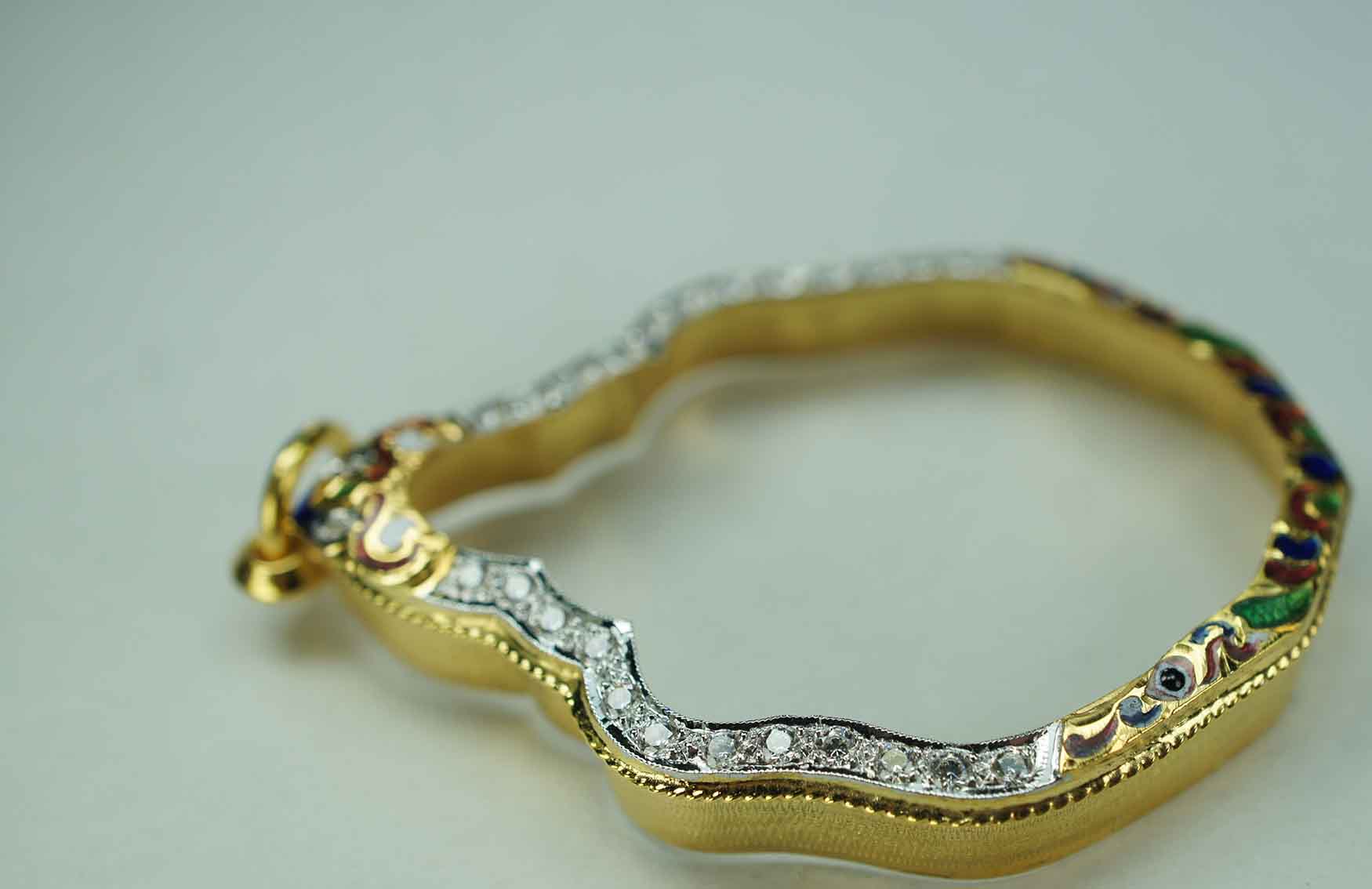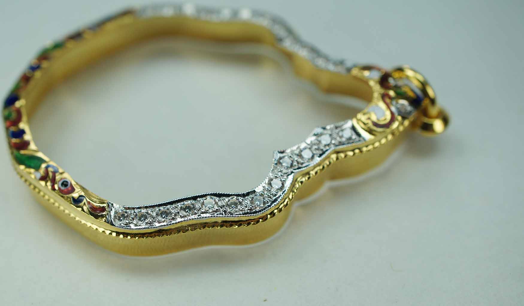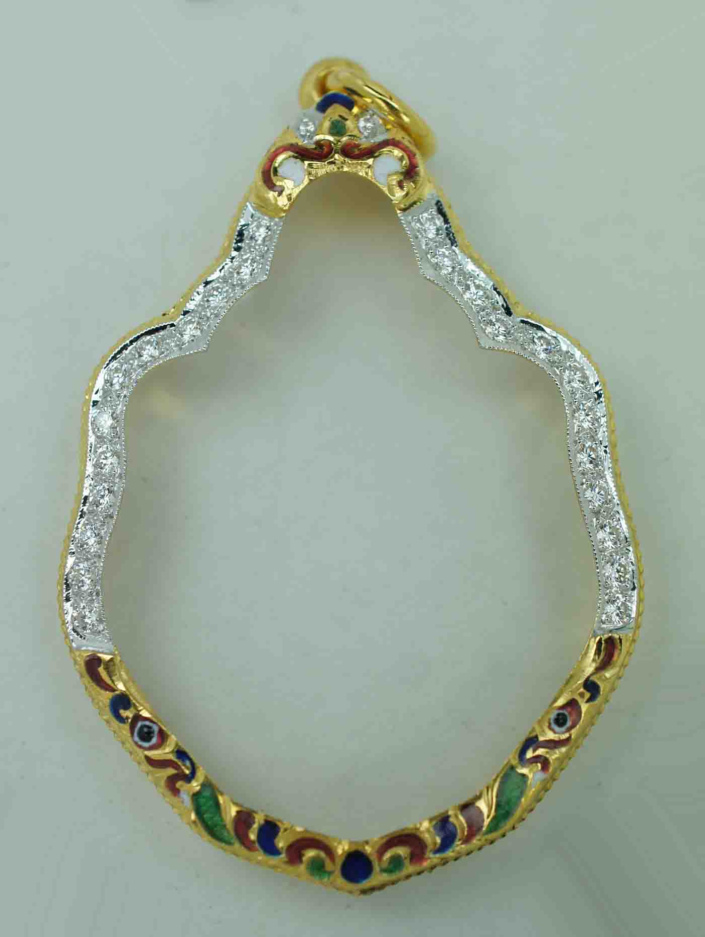 กรอบทอง ยกซุ้มหัวสิงห์ ลงยา ฝังเพชร ข้างเกลียวโปเต