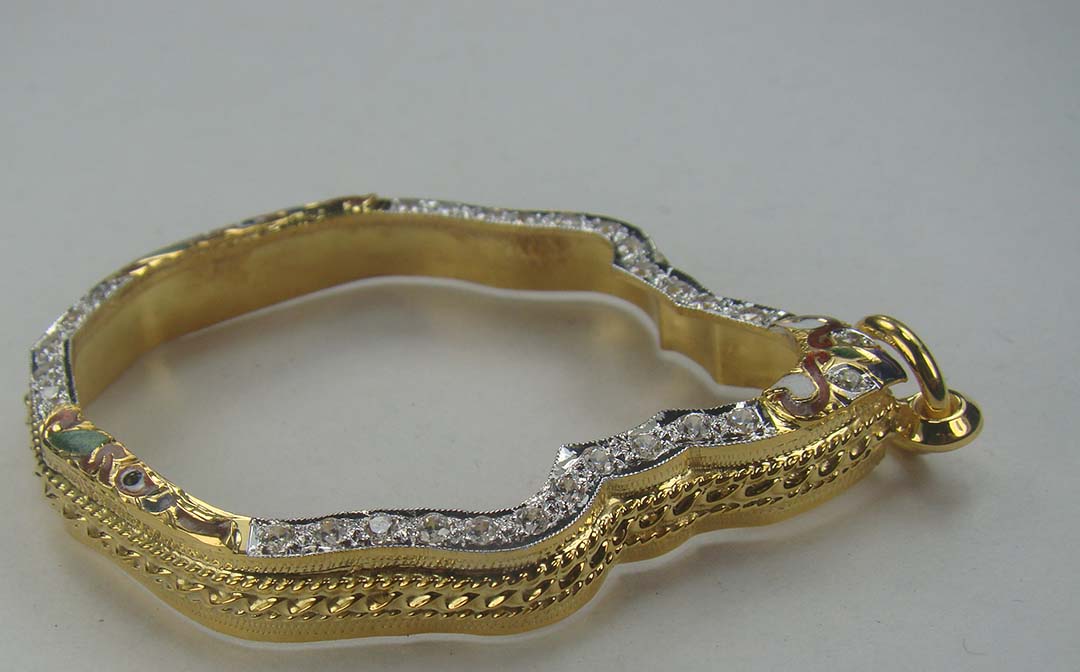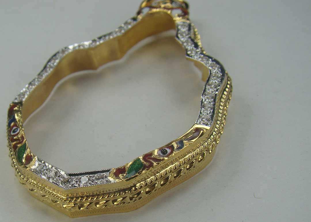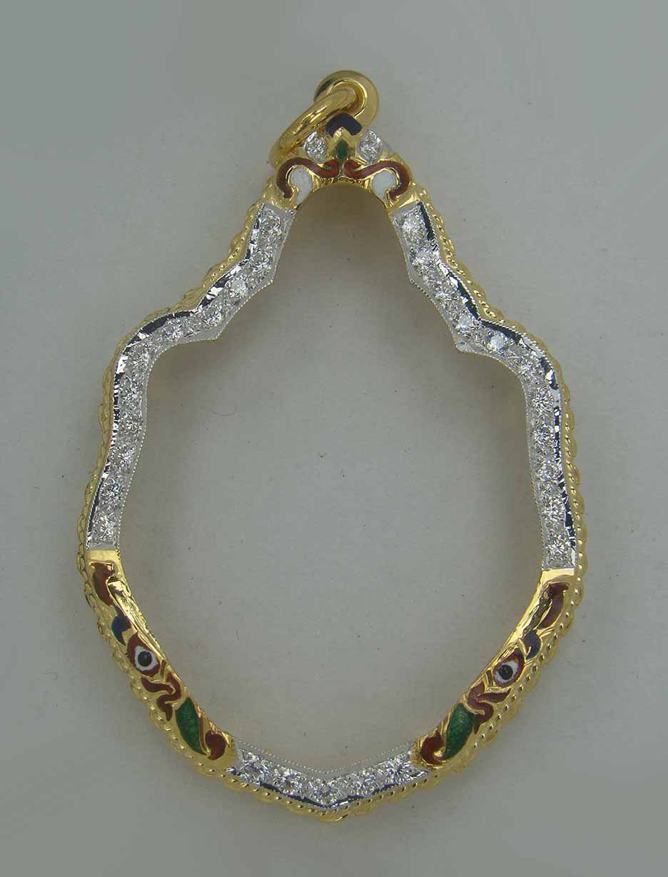 กรอบทอง ยกซุ้มหัวสิงห์ ลงยา ฝังเพชร ข้างเกลียวโปเต