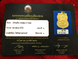 หลวงปู่ทวดปี2509 เหรียญพุฒซ้อนเนื้อช้อนส้อมเลี่ยมทองใบประกาศและบัตรรับรองเวปการันตี
