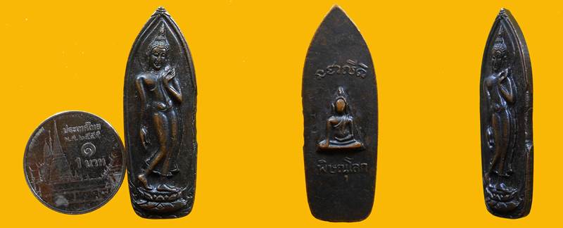(องค์ละ 400) เหรียญพระลีลาหลังพระนางพญา อ.ถนอม วัดนางพญา จ.พิษณุโลก ปี2514 สภาพสวย พร้อมบัตรรับรองครับ -(หลวงปูโต๊ะ,หลวงพ่อทบ,หลวงพ่อโอด ร่วมปลุกเสก) -----จัดสร้างโดย วัดนางพญา จังหวัดพิษณุโลกสมัยพระอาจารย์ ถนอม เขมจาโร และพระครูบวรชินรัตน์ โดยมีสมเด็จพระวันรัต (ปุ่ ปุณณสิริ) ซึ่งค่อมาเป็น สมเด็จพระสังฆราชองค์ที่ 17 แห่งกรุงรัตนโกสินทร์ เป็นประธานฝ่าย สงฆ์และทรงจุดเทียนชัย พระอาจารย์ ไสว สุมโน เป็นเจ้าพิธี พระครูวามเทพมุนี เป็นประธานฝ่ายพราหมณาจารย์ และพล โท สำราญ แพทยกุล แม่ทัพภาพที่ 3 เป็นประธานฝ่ายฆราวาสและหลวงพ่อเงิน วัดดอนยายหอม ทำพิธีดับเทียนชัย วัตถุประสงค์ เพื่อจัดหาจตุปัจจัยในการสร้างพระอุโบสถวัดนางพญา เพื่อเป็นสถานที่ประกอบสังฆกรรมแห่งสงฆ์ โดย เริ่มต้นดำเนินการเมื่อวันพุธ ที่ 29 มกราคม 2512 เวลา 9 นาฬิกา 12 นาที เป็นปฐมฤกษ์ตามพระฤกษ์สร้างพระอุโบสถที่ได้ รับพระราชทานจากพระบาทสมเด็จพระเจ้าอยู่หัวฯ และได้ประกอบพิธีมหาพุทธาภิเษกมหาจักรพรรดิ์ตราธิราชตามจารีต ประเพณีโบราณาจารย์ เมื่อวันเสาร์ที่ 30 มกราคม 2514 ในวิหารวัดนางพญา จังหวัดพิษณุโลก เจ้าอาวาสวัดนางพญาเล่าว่าพิธีพุทธาภิเษกในครั้งนั้นต้องเรียกว่าเป็นอภิมหาพิธีพุทธาภิเษกที่ยิ่งใหญ่ ที่สุด ในยุคนั้นมีสุดยอดเกจิอาจารย์จากทั่วประเทศร่วมพิธี อาทิเช่น หลวงปู่โต๊ะ วัดประดู่ ฉิมพลี หลวงปู่ฝั้น อาจาโร หลวงปู่ผาง หลวงปู่แหวน หลวงพ่อเกษม หลวงพ่อแพ เป็นต้น มีการถ่ายทอดเสียงออกอากาศทางสถานีวิทยุไปทั่วประเทศตลอดวัน ตลอดคืน เริ่มตั้งแต่เวลา 06.05 น.ประกอบพิธีบวงสรวงครูบาจารย์ และอดีตเจ้าอาวาสตามด้วยพิธีถวายเครื่องสักการะบูชา พระพุทธชินราช พิธีถวายเครื่องสักการะบูชาบวงสรวงสมเด็จพระนเรศวรมหาราช พิธีถวายเครื่องสักการะบูชาพระคุณ พระรัตนตรัย พิธีบวงสรวงเทพยดาและพิธีบวงสรวงบูชาฤกษ์ เวลา 16.00 น. สมเด็จพระวันรัต ประธานฝ่ายสงฆ์ ทรง อธิษฐานจิตจุดเทียนชัย พระคณาจารย์จากทั่วประเทศนั่งปรกรอบมณฑลพิธีภาวนาปลุกเสกตลอดเวลา เวลา 19.30 น. จุด เทียนชัยมหาพุทธาภิเษก เวลา 02.00 น. เริ่มต้นสวดคาถาพระจักรพรรดิ์ตราธิราช พระคณาจารย์นั่งปรกเจริญภาวนาปลุก เสกตลอดรุ่ง และหลวงพ่อเงิน วัดดอนยายหอมได้กระทำพิธีดับเทียนชัย ณ เวลา 06.05 น. #####เกจิคณาจารย์ร่วมปลุกเษก##### 1.สมเด็จพระวันรัต(ปุ่นปุณณสิริ) 2.พระอุปชาฌ์ประมุขวัดจงโกจ.ลพบุรี 3.พระครูพรหมจักรสังเวช(ครูบาพรหมาธมฺจกฺโก)วัดพระพุทธบาทตากผ้าจ.ลำพูน 4. พระครูวิรุนห์ธรรมโกวิทวัดเจดีย์สถานจ.เชียงใหม่ 5. พระครูภาวนาภิรัตน์วัดน้ำบ่อหลวงจ.เชียงให