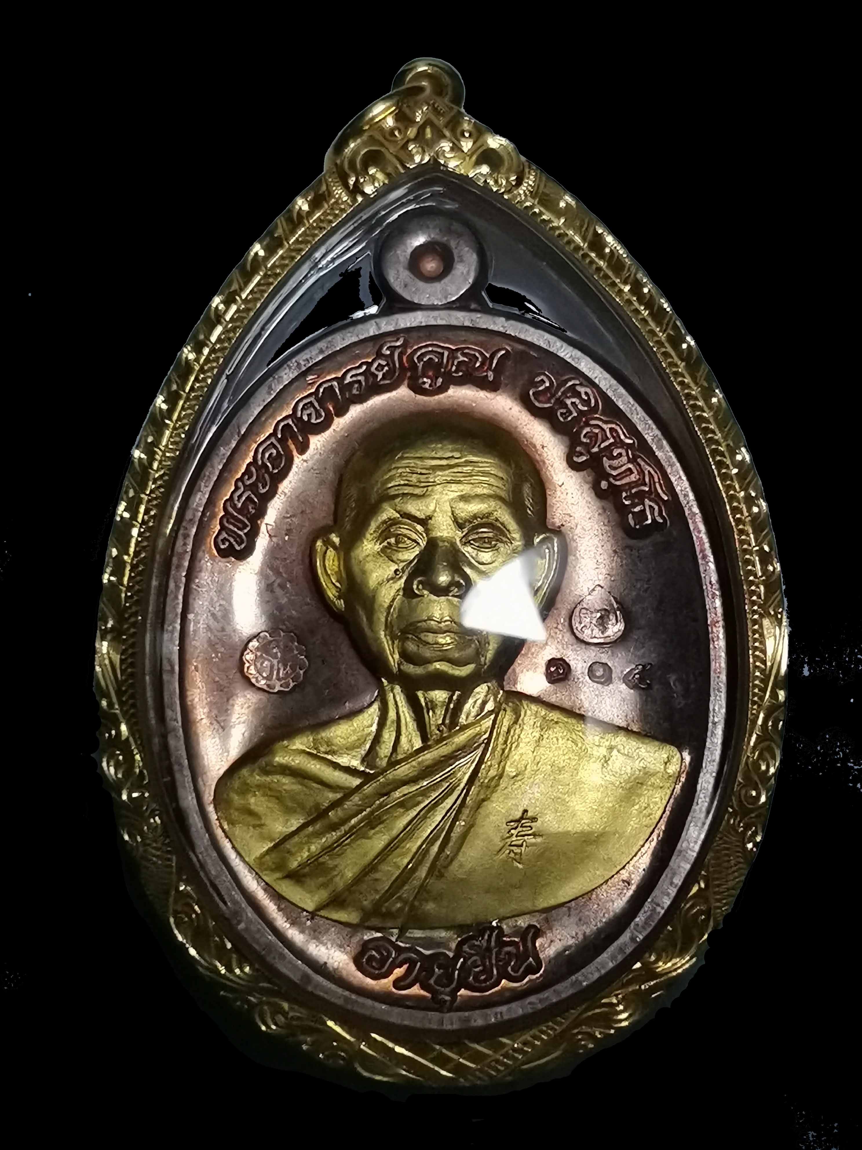 เหรียญรุ่นอายุยืน๘๘ ออกวัดแจ้งนอก ปี 53 เนื้อนะวะ พิ้งค์โกลด์ หน้ากากทองคำ หลังยันต์ หมายเลข 105 เลี่ยมกรอบทองพร้อมบูชา สภาพสวย พร้อมกล่องเดิม และบัตรรับรองจีพระ