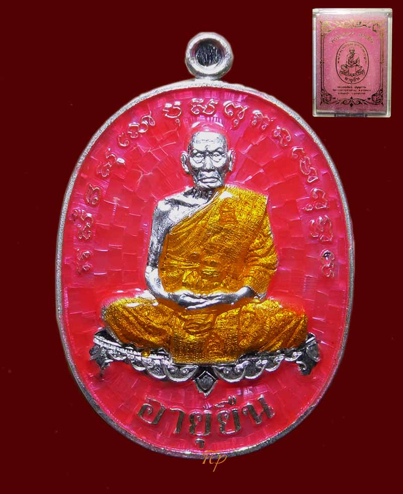เหรียญเงินลงยาชมพู รุ่นพรหมวิหารอายุยืน หลวงปู่พัฒ