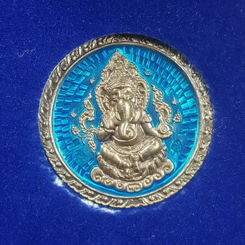 เหรียญพระพิฆเนศร์ เนื้อเงิน ลงยาน้ำเงิน " หลวงพ่อช