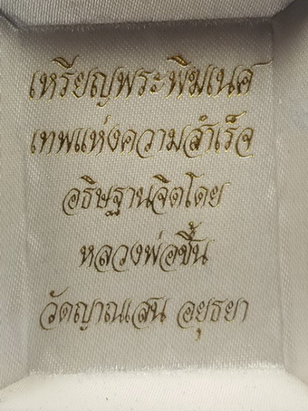 เหรียญพระพิฆเนศร์ เนื้อเงิน ลงยาสีน้ำเงิน " หลวงพ่อชื้น วัดญาณเสน " จ.อยุธยา ปี 2546 กล่องกำมะหยี่เดิม สร้างน้อย หายากมาก ( สร้างแค่ 50 เหรียญเท่านั้น ) พระพิฆเนศร์ เทพแห่งความสำเร็จ " หลวงปู่ชื่น พุทธสโร " วัดญาณเสน จ.นครศรีอยุธยา เจ้าตำราเคล็ดวิชา พระรัตนจักร อันลือลั่น ท่านเป็นอาจารย์ผู้เรืองวิชารูปหนึ่ง ช่วยเหลือชาวบ้าน รักษาโรคภัยไข้เจ็บ ด้วยน้าพระพุทธมนต์ และเป็นพระเกจิที่เชี่ยวชาญด้านไสยศาตร์วิชาอาคมและแพทย์แผนโบราณ โดยนำความรู้และวิชาทุกด้านช่วยปัดเป่าทุกข์ภัยให้กับชาวบ้านจนเป็นที่เคารพเลื่อมใสในความมีเมตตาของท่าน เป็นพระอีกรูปหนึ่งที่ชาวเมืองกรุงเก่าภาคภูมิใจอย่างยิ่ง เหรียญพระพิฆเนตรเทพแห่งความสำเร็จ หลวงพ่อชื้น พุทธสโร วัดญาณเสน ท่านอธิฐานจิตเสกให้ โดยท่านจะนำพระมาแตะแล้วเป่าที่วัตถุมงคลนั้น ๆ ให้ทางคณะชมรมศิษย์เก่าดนตรีไทยร่วมกับทางคณะศิษย์ขอร่วมสร้างไว้เพื่อบูชากันในกลุ่มลูกศิษย์ทางชมรม จึงมีจำนวนสร้างไม่มากนัก โดยมีการสร้าง เหรียญเนื้อทองคำ 9 เหรียญ เหรียญเงินลงยา 159 เหรียญ โดยแบ่งออกมีทั้งหมด 3 สี เป็น เหรียญเนื้อเงินลงยาสีเขียว 39 เหรียญ เหรียญเนื้อเงินลงยาสีน้ำเงิน 50 เหรียญ เหรียญเนื้อเงินลงยาสีแดง 70 เหรียญ และเหรียญเนื้อทองแดงเนื้อทองฝาบาตรและเนื้อทองทิพย์สร้างรวม 699 เหรียญ ( เนื้อละ 233 เหรียญเท่านั้น ) สร้างเพื่อแจกในงานประจำปี ลักษณะเหรียญทรงกลม ด้านหน้าจะเป็นพระพิฆเนศร์ ปางประทานพร ด้านหลัง ยันต์ โอม ศรี คเณศายะ นะมะฮา เป็นบทสวดบูชาขอพรขอความสำเร็จในด้านต่างๆ มีโชค และมีทรัพย์เงินทอง สมความสำเร็จทุกปรารถนา