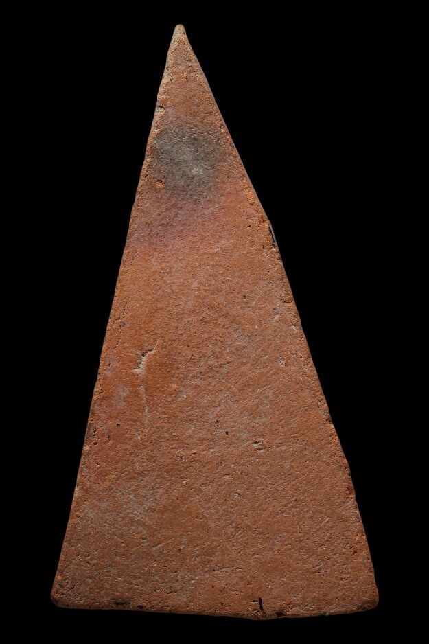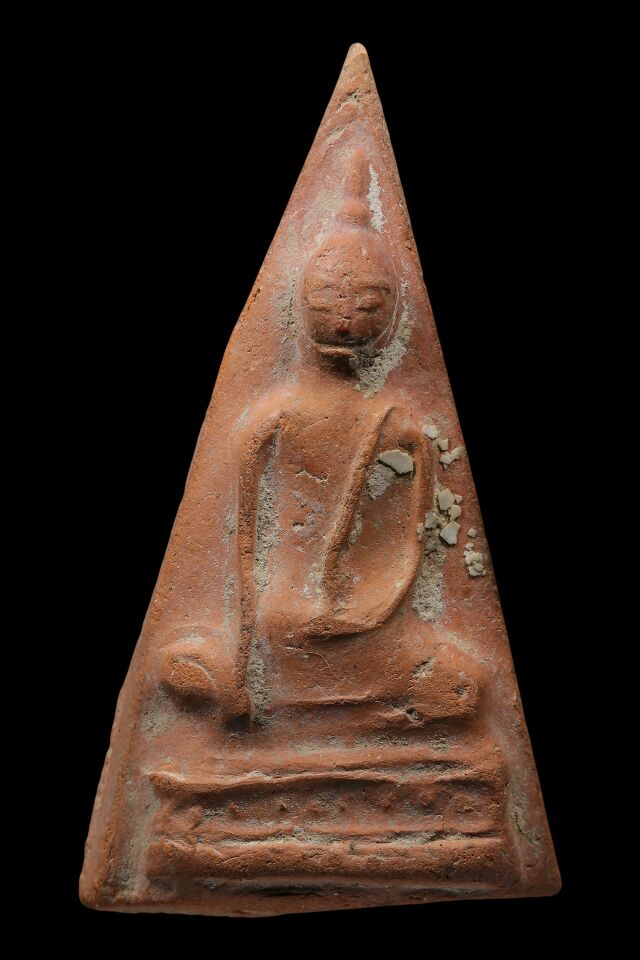 พระสรรค์นั่งพิมพ์โบราณ ตัดสามเหลี่ยม เนื้อดิน หลวงพ่อกวย วัดโฆสิตาราม