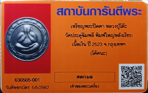 เหรียญปิดตาพิมพ์ใหญ่เนื้อเงินปี23(สร้าง20เหรียญ)