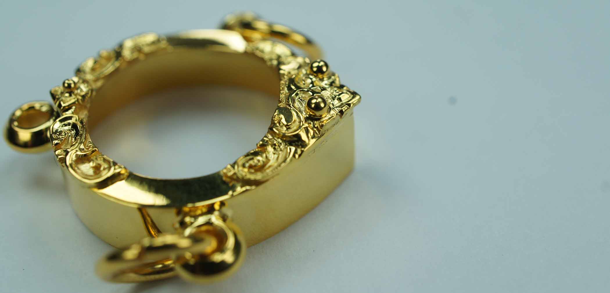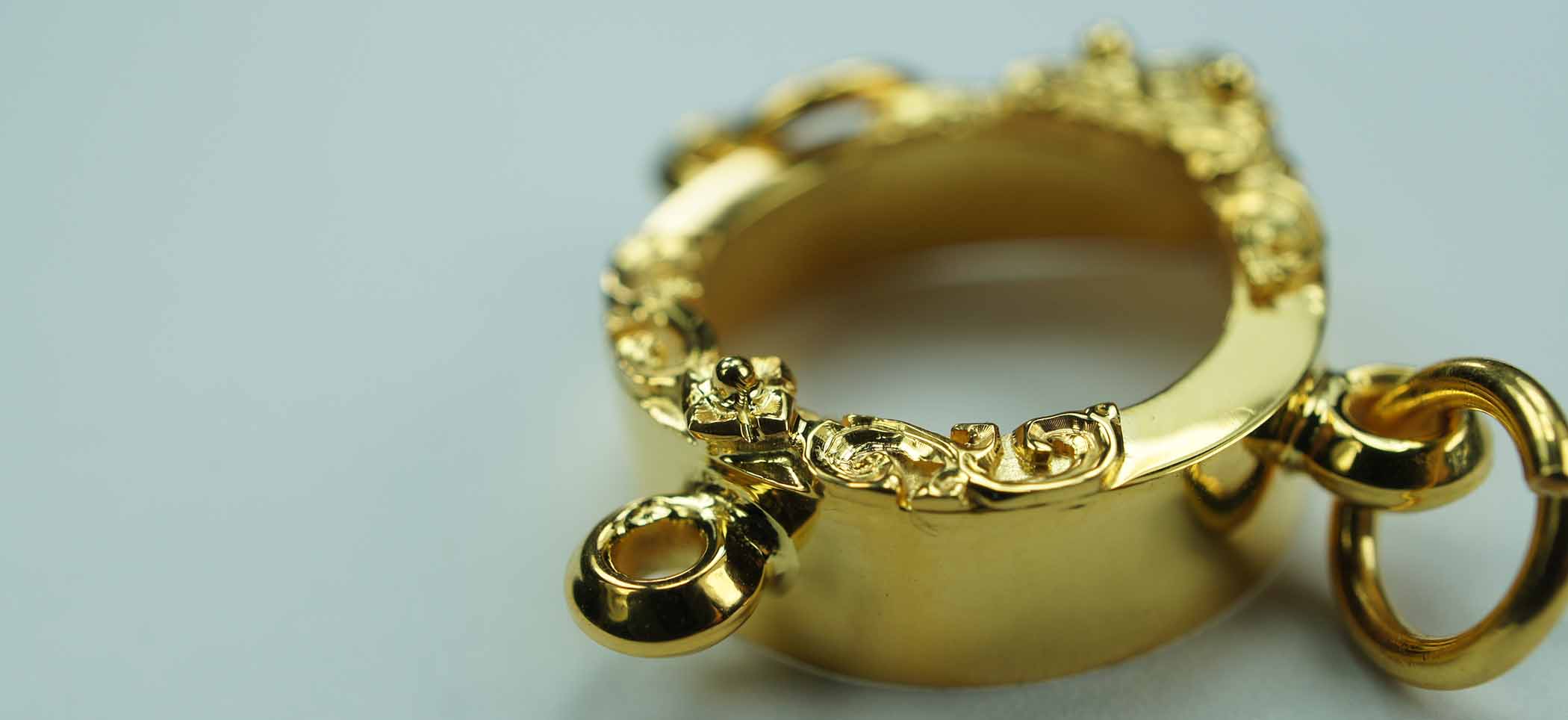 กรอบทองคำ ทรงกลม ลงยา ยกซุ้ม ข้างปัดเงา ขนาด เส้น