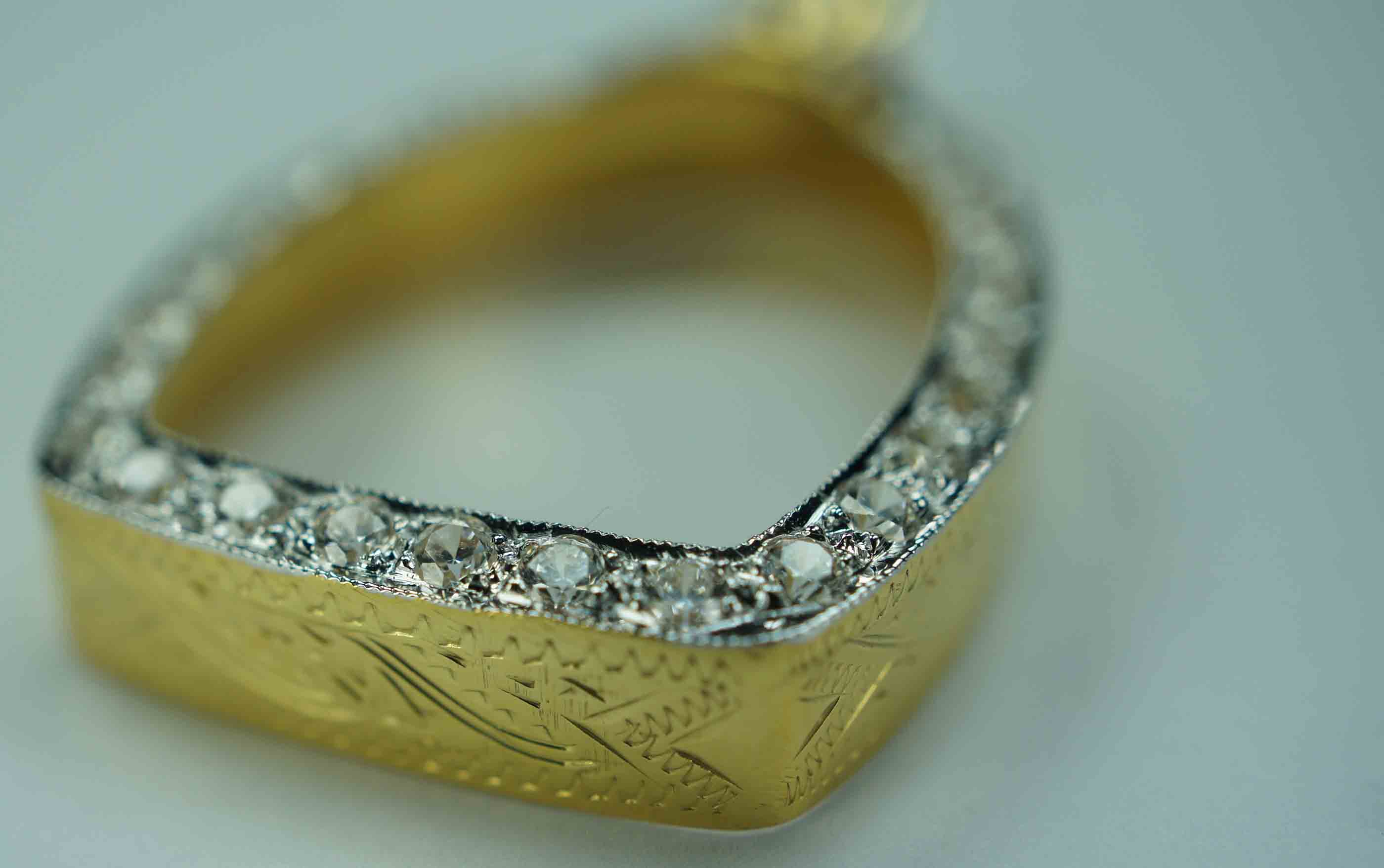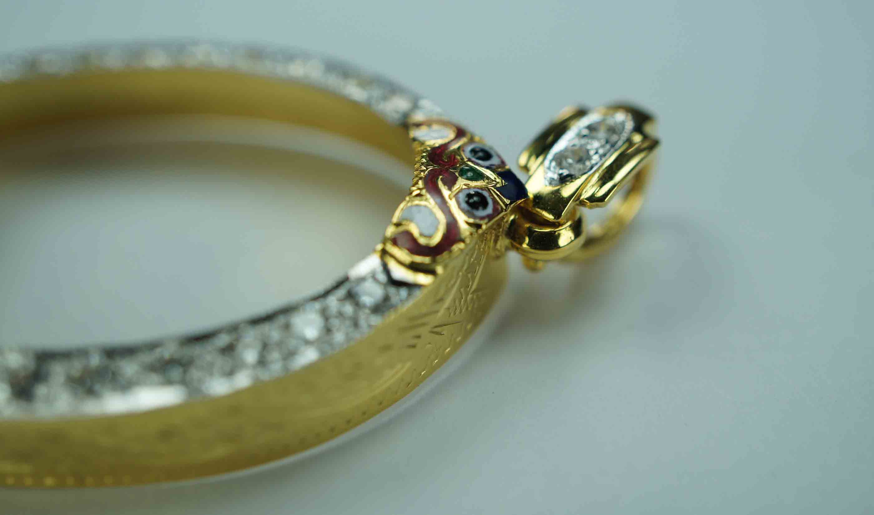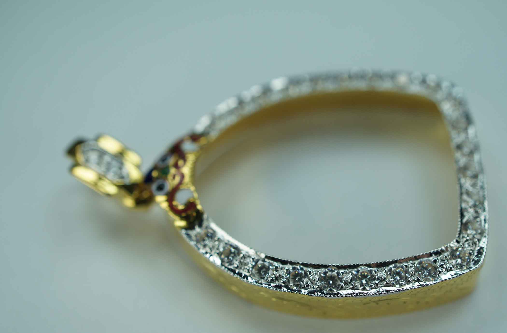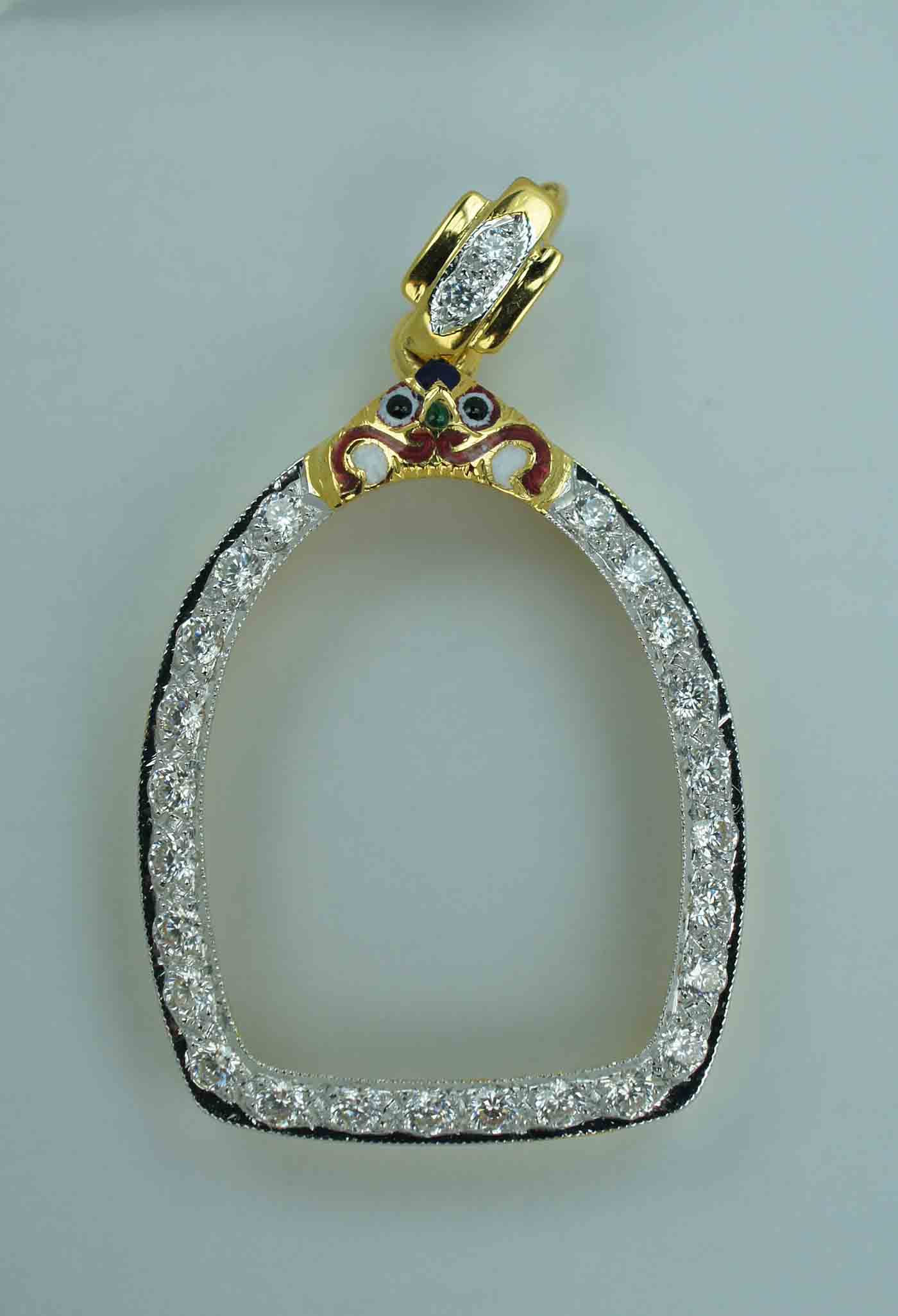 กรอบทองฝังเพชร ห่วงเพชร ยกซุ้ม หัวสิงห์ ลงยา ข้างแ