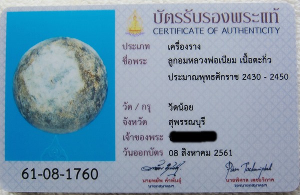 เนื้อตะกั่ว พร้อมบัตรรับรองพระแท้