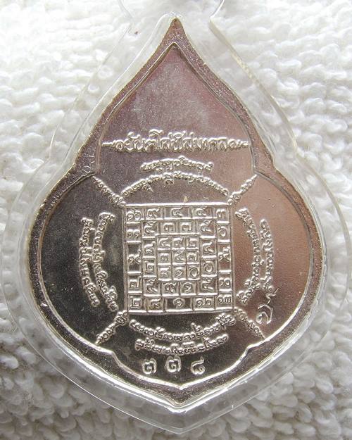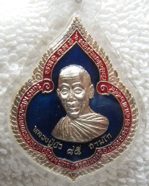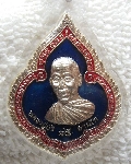 เหรียญหยดน้ำเนื้อเงินลงยาสีนำเงิน หลวงปู่บัว ถามโก วัดศรีบูรพาราม ตราด ปี 2554
