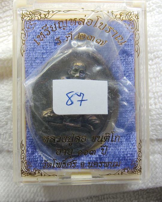 เหรียญหล่อโบราณ ร.ศ.237 หลวงปู่สอ วัดโพธิ์ศรี เนื้อสัมฤทธิ์โบราณ เลข 388 พร้อมกล่องเดิม
