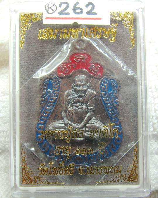 เหรียญเสมามหาเศรษฐี หลวงปู่สอ วัดโพธิ์ศรี เนื้อนวะโลหะ ลงยา 2 สี พร้อมกล่องเดิมครับ
