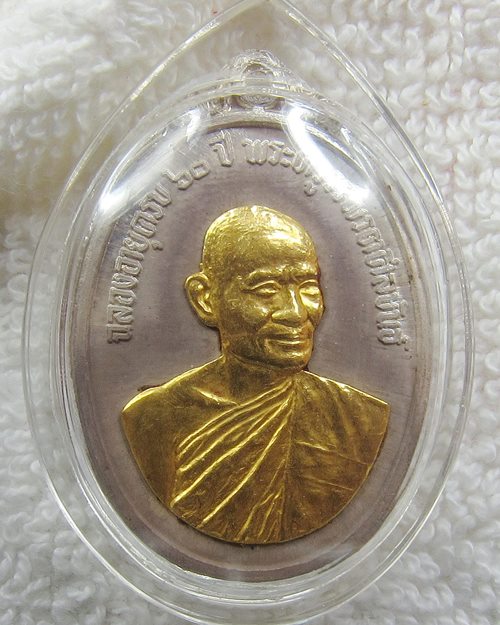 เหรียญหลวงปู่เฮี้ยง วัดป่าอรัญญิกกาวาส ชลบุรี เนื้อเงินหน้ากากทอง ปี 2516