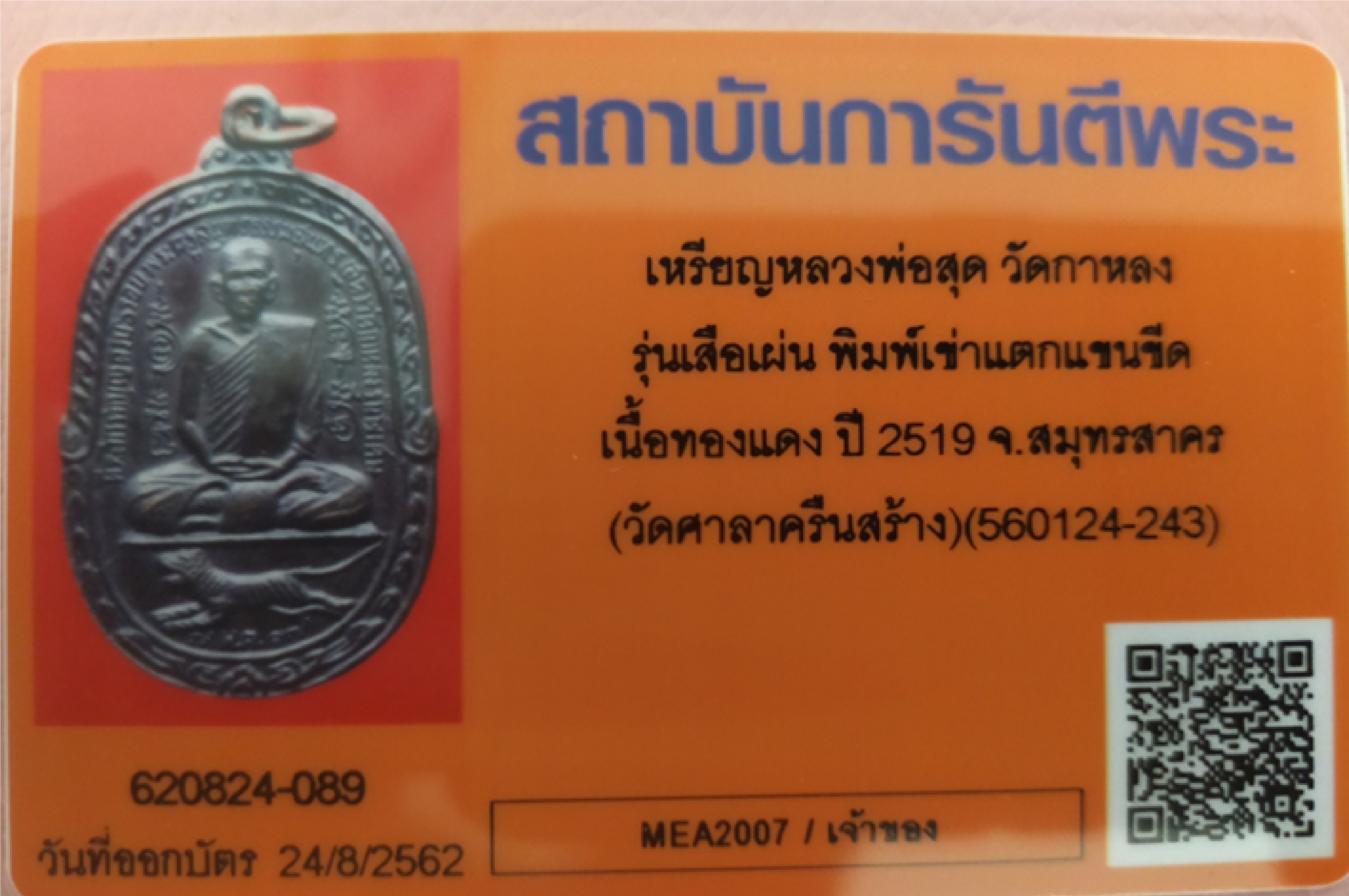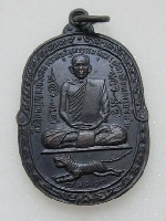หลวงพ่อสุด วัดกาหลง รุ่นเสือเผ่น พิมพ์เข่าแตกแขนขีด เนื้อทองแดง (วัดศาลาครืนสร้าง) เลื่ยมทอง พร้อมบัตรการันตีฯ