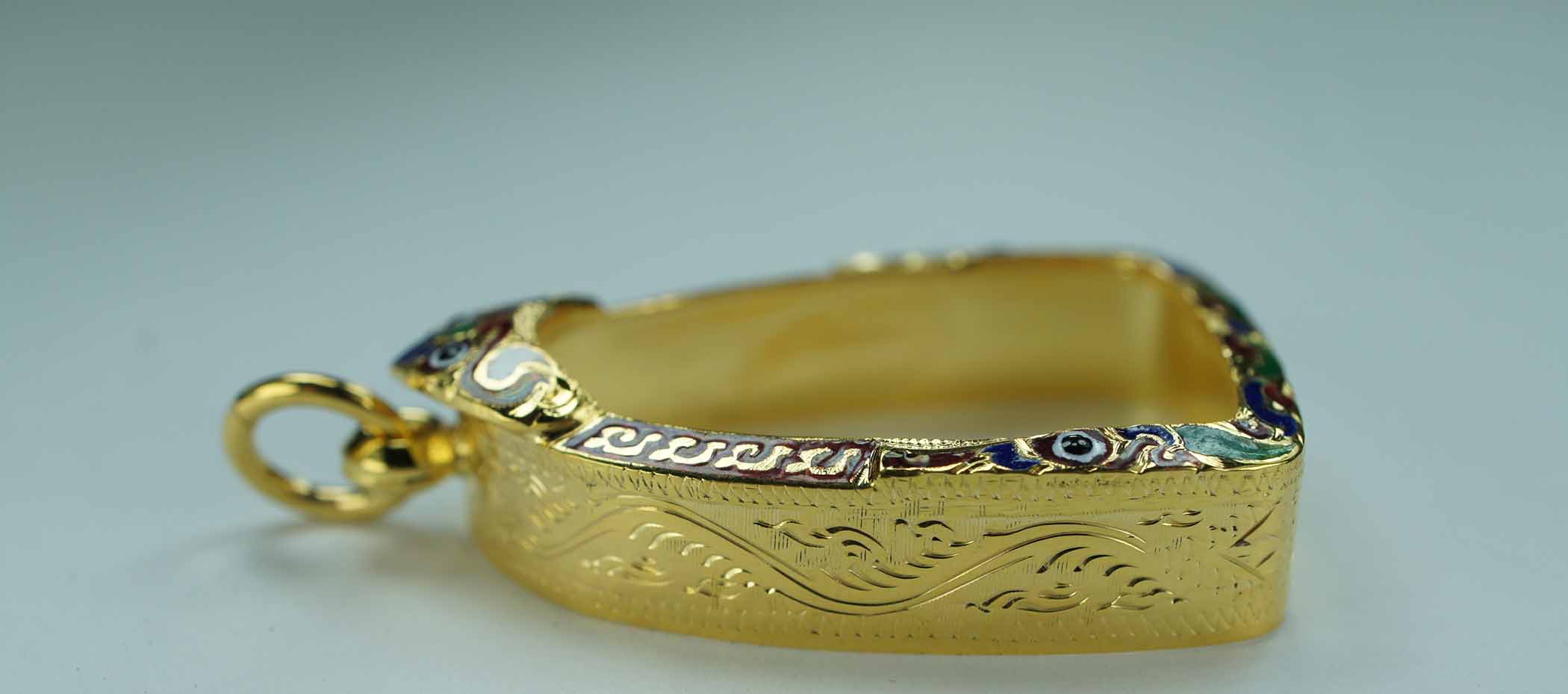 กรอบทอง ลงยาล้อม ยกซุ้ม หัวสิงห์ ข้างแกะลาย *** ใ