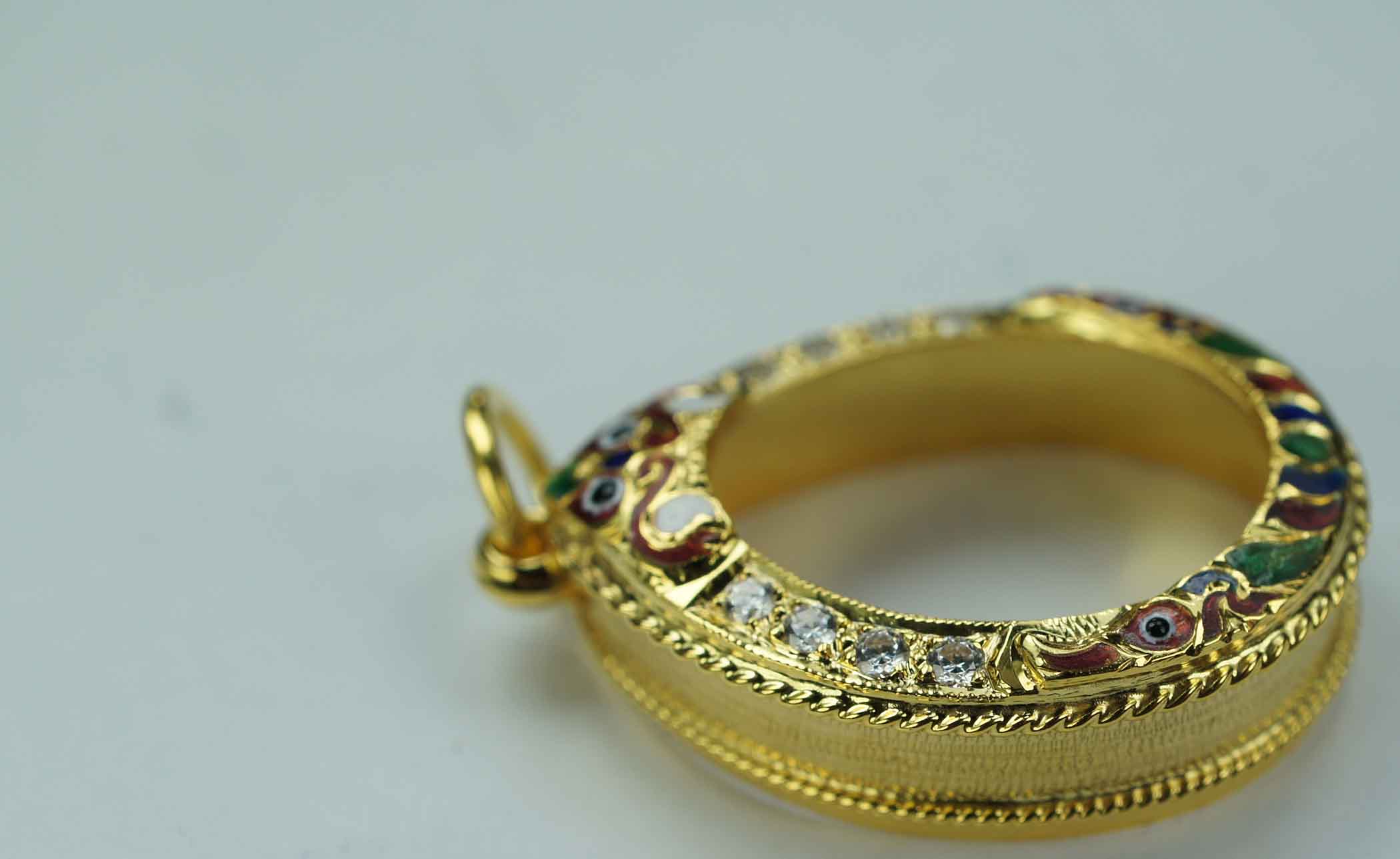 กรอบทองคำ ล้อมเพชร CZ ลงยา ข้างเกลียวโปเต้ ใส่เหรี