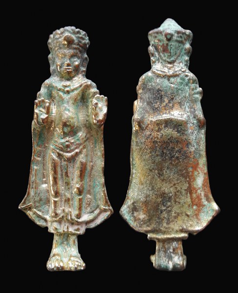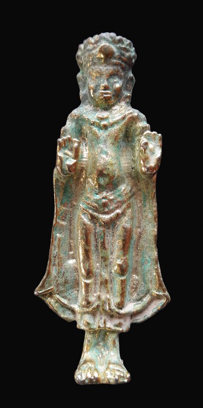 พระทวาราวดียืน เนื้อโลหะผสม สมันขอมยุคต้น