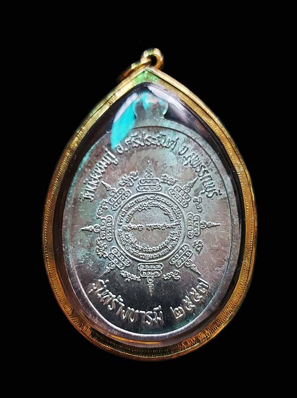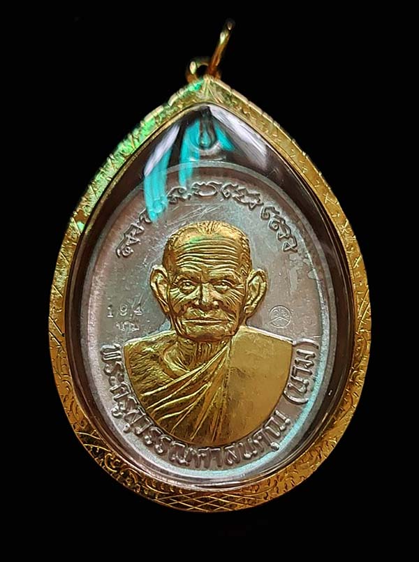 เหรียญเงินหน้าทองคำใหญ่ รุ่น " สร้างบารมี " หลวงปู่นาม วัดน้อยชมภู่ จ.สุพรรณฯ ปี 2557 ( หมายเลข 194 ) สร้างจำนวน 199 เหรียญ เลี่ยมทองพร้อมใช้