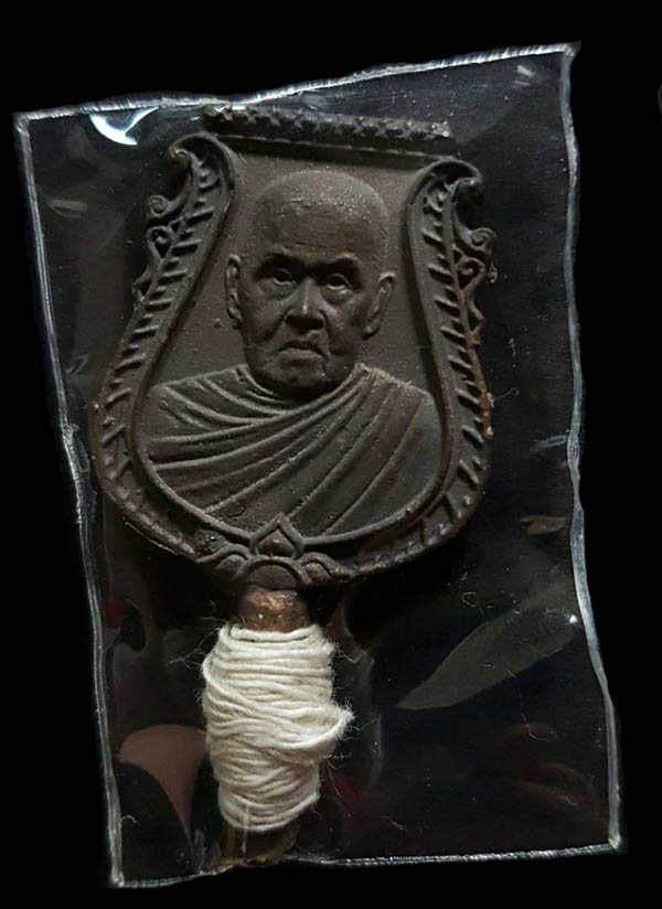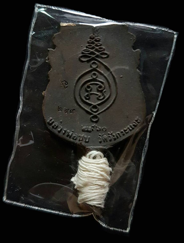 เหรียญหล่อเสมาหน้าเสือ หลวงพ่อชุบ วัดวังกระแจะ จ.กาญจนบุรี ชุดนำฤกษ์ตัดติดก้านช่อ เลข 249 พร้อมสายสิญจน์ หายาก