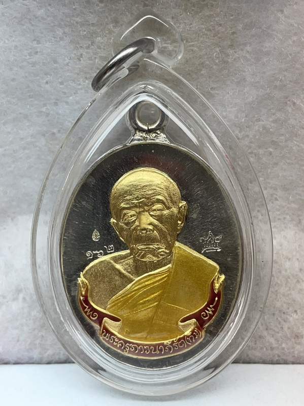 ๑ ใน ๑๙๙ องค์ เนื้อเงินหน้ากากทองคำ ลงยาสีแดง เหรียญห่วงเชื่อม (ย้อนยุค) รุ่นภาวนา หลวงปู่ทิม วัดละหารไร่ จัดสร้างปี ๒๕๕๘ ตอกโค๊ตศาลา+เม็ดงา และหมายเลข ๑๖๒