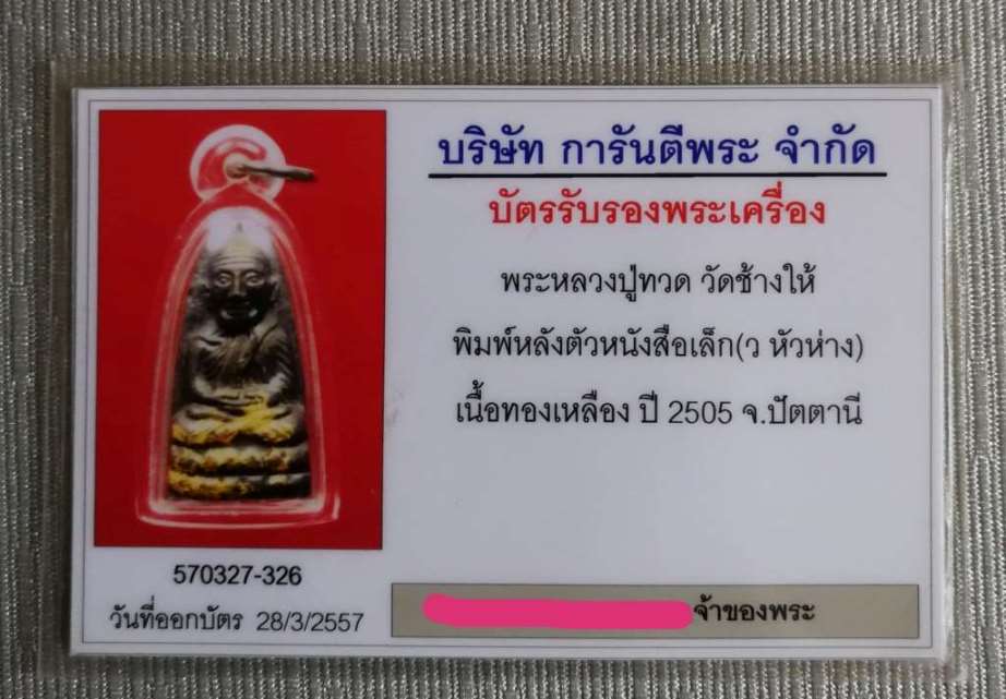 ปั้มหลังหนังสือเล็ก หลวงปู่ทวด ปี05 จมูกโ่ด่งๆสวยคมครับ