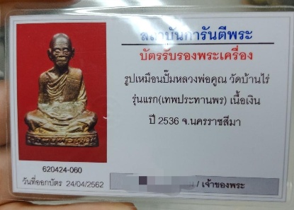 หลวงพ่อคูณ รูปเหมือนปั๊มเทพประทานพรเนื้อเงินมาพร้อมกล่องเดิมจากวัด