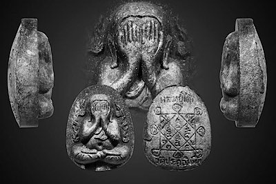 พระปิดตากนกข้างฝังตะกรุดเงินคู่ โชว์