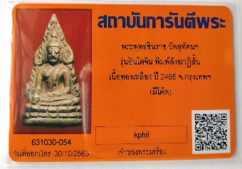 พระพุทธชินราชอินโดจีน พิมพ์สังฆาฏิสั้น หน้าเสาร์ 5 พ.ศ.2485 วัดสุทัศน์ฯ