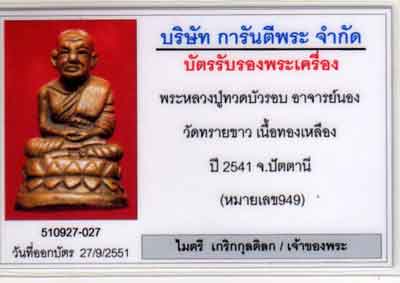 หลวงปู่ทวด บัวรอบ อ.นอง เนื้อเหลือง เลขสวย 949