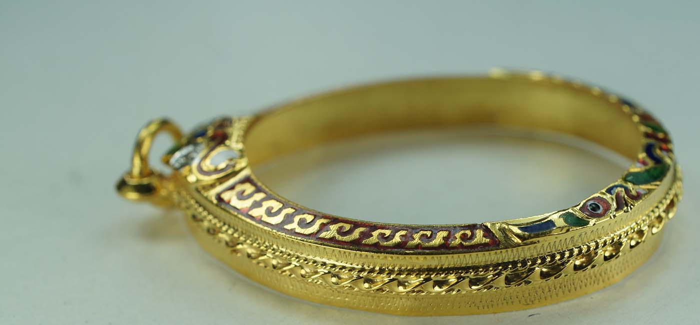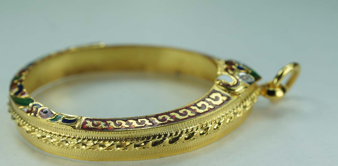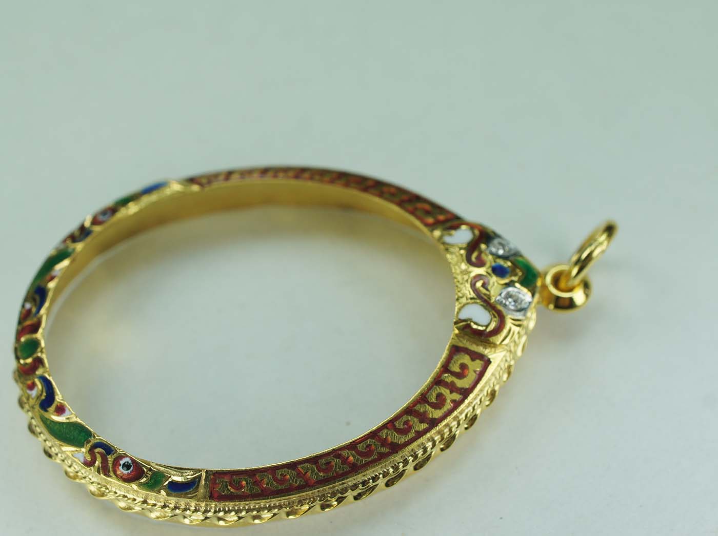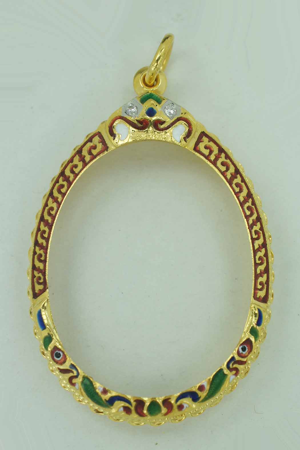กรอบทองคำรูปไข่ ลงยา ยกซุ้ม ข้างเกลียวโปเต้ ตาเพชร