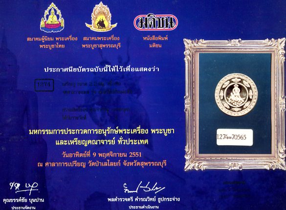 สร้างโดยสมาคมพระเครื่องพระบูชาประเทศไทย ป๋าพยับ คำพันธ์เป็นประธานการสร้าง ขายแล้ว