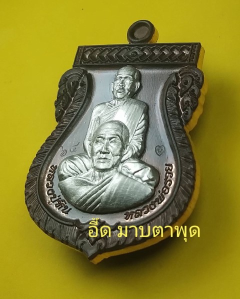 เหรียญบูชาครู เนื้อนวะโลหะ หน้าเงิน เบอร์ 64 หลวงพ่อรวย อคคสาโร วัดมาบตาพุด จว.ระยอง