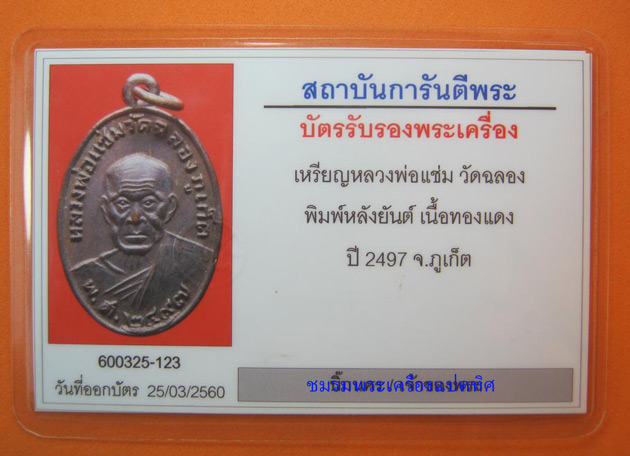 เหรียญหลวงพ่อแช่ม วัดฉลองภูเก็ต ปี2497 บล๊อกนิยม ศ.ตัน เนื้อทองแดงสภาพสวยมากครับ บัตรจีพระ