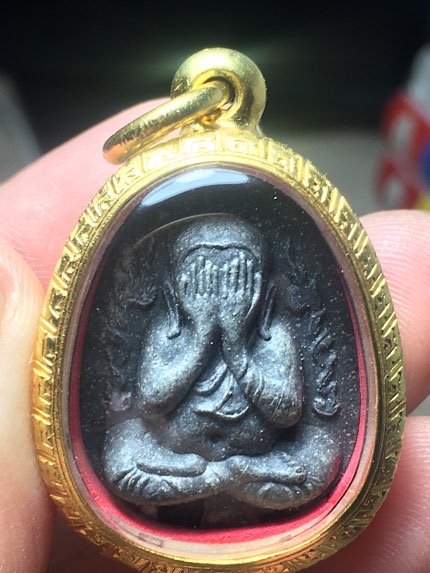 พระปิดตากนกข้าง เนื้อผงใบลาน ฝังตะกรุดเงินคู่(โชว์ |