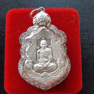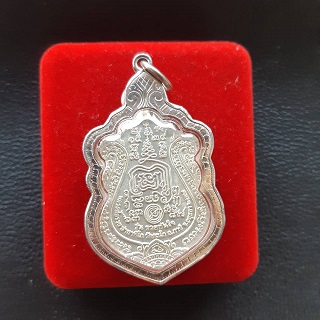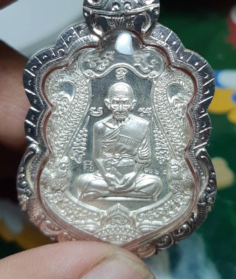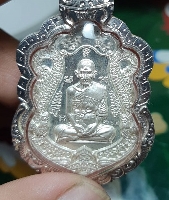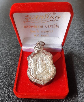 เหรียญเสมา หลวงพ่อรวย วัดตะโก อ.ภาชี จ.อยุธยา รุ่น รวยทันใจ(เนื้อเงิน)เลี่ยมกรอบเงินแท้เเกะลาย ตอกโค๊ต ตอกหมายเลข พร้อมกล่องเดิมครับ