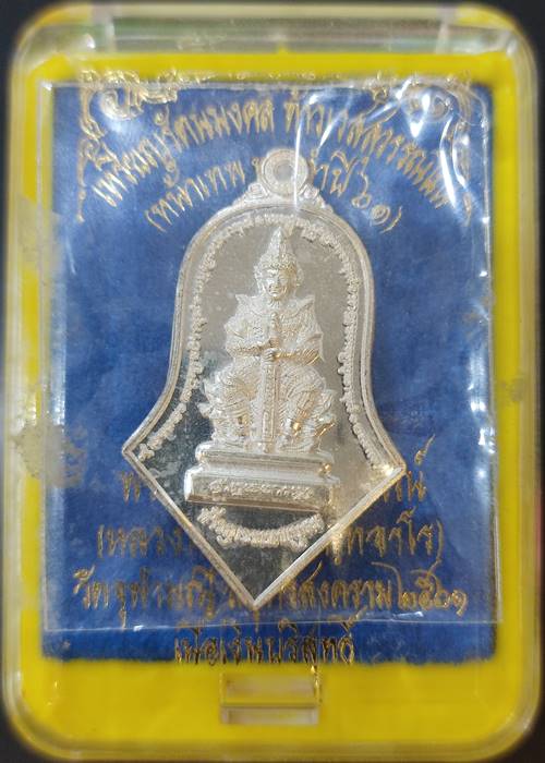 เหรียญจำปีหน้าเทพรุ่นแรก หลวงพ่ออิฎฐ์ วัดจุฬามณี จัดสร้างปี 2561 วัตถุประสงค์เพื่อจัดสร้างพระเมรุ องค์นี้เป็นเนื้อเงิน จำนวนการสร้างแค่ 1000 เหรียญ เหรียญนี้เลข873 พระผิวเดิมๆ สภาพสวยมือหนึ่ง มาพร้อมกล่องเดิม