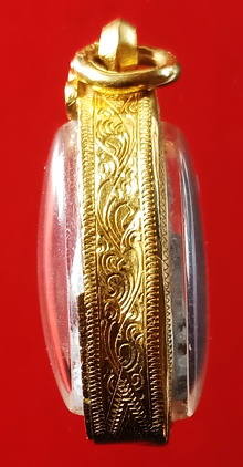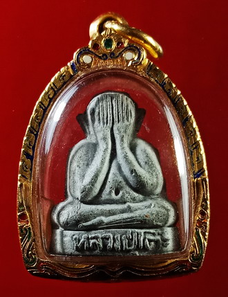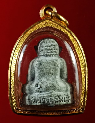 พระพิมพ์นี้พระเณรช่วยกันกดพิมพ์ขึ้นเองภายในวัด โดยหลวงปู่ปลุกเสกให้นานถึง 1 พรรษา ............องค์ที่นำลงในชมรมเป็นเนื้อผงใบลาน บรรจุตะกรุดเงิน 1 ดอกที่ใต้ฐาน เห็นนิ้วมือชัดเจนมากครบทั้ง10นิ้ว เห็นเส้นที่โคนนิ้วมือ ใบหูติดเต็มทั้ง 2 ข้าง มีเส้นเกศา5เส้น ตัวหนังสือชัดทั้งด้านหน้า ด้านหลัง เม็ดพระศกชัดดูง่าย ***รับประกันพระผิวเดิมไม่ผ่านการแขวนใช้บูชา ผิวพระไม่ช้ำ หรือผิวเป็นมันจากการสัมผัส ตามองค์พระยังมีนวลแป้งโรยพิมพ์เดิมๆ ไม่มีอุดซ่อม หรือแต่งผิว เลี่ยมทอง%สูงถึง 91% มีให้พร้อมบัตรรับรอง