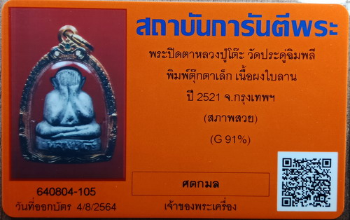 พระปิดตาตุ๊กตาเล็กหลวงปู่โต๊ะ ปี21(ทอง91%)