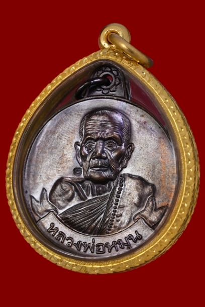 เหรียญหลวงปู่หมุน วัดบ้านจาน รุ่นหมุนเงินหมุนทอง พิมพ์ประคำ18เม็ดหนา เนื้อทองแดง ปี2542 พร้อมเลี่ยมทองเจริญศิลป์หนาๆ