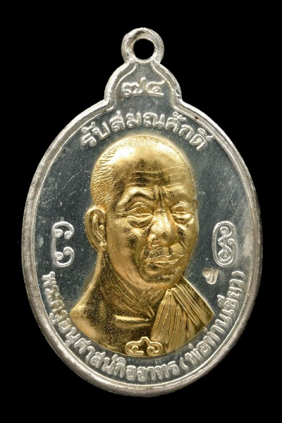 เหรียญรับสมณศักดิ์ พ่อท่านเขียว วัดห้วยเงาะ จ.ปัตตานี"รุ่นสมณศักดิ์ รักษ์แผ่นดิน"เนื้อเงินหน้าทอง"ปี ๒๕๔๖ หายาก