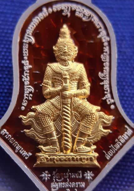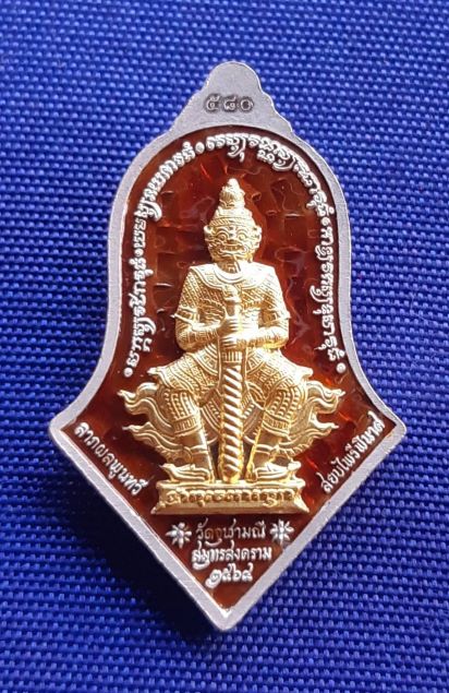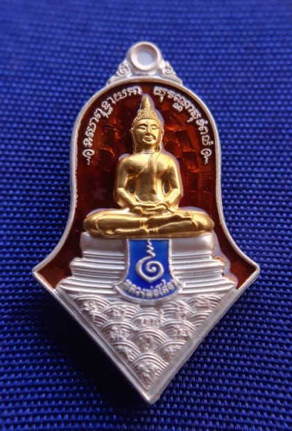 เหรียญจำปี หลวงพ่อโสธร หลังท้าวเวสสุวรรณ หลังท้าวเวสสุวรรณ เนื้อเงินลงยา หน้ากากทองคำ หน้าหลัง พิมพ์เล็ก