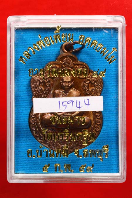 เหรียญหลวงพ่อเพี้ยน วัดเกริ่นกฐิน รุ่นชนะมาร เนื้อทองแดง ปี2559 จ.ลพบุรี (เลข 15944)