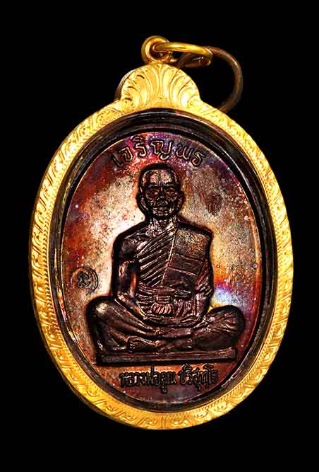 เหรียญเจริญพร เต็มองค์ เนื้อทองแดง เลี่ยมทอง #3