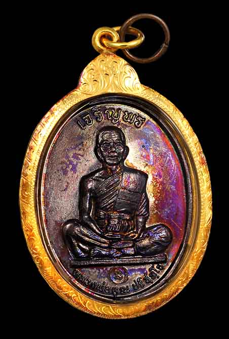 เหรียญเจริญพร เต็มองค์ เนื้อทองแดง เลี่ยมทอง #4
