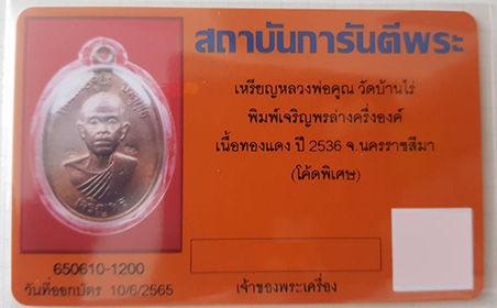 1 ใน 2,000 เหรียญ หลวงพ่อคูณ เจริญพรล่างทองแดงผิวไฟ 3 โค๊ต