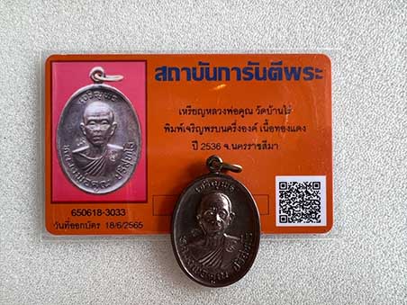 หลวงพ่อคูณ เหรียญเจริญพรบนตัวตัดนวะเนื้อทองแดง