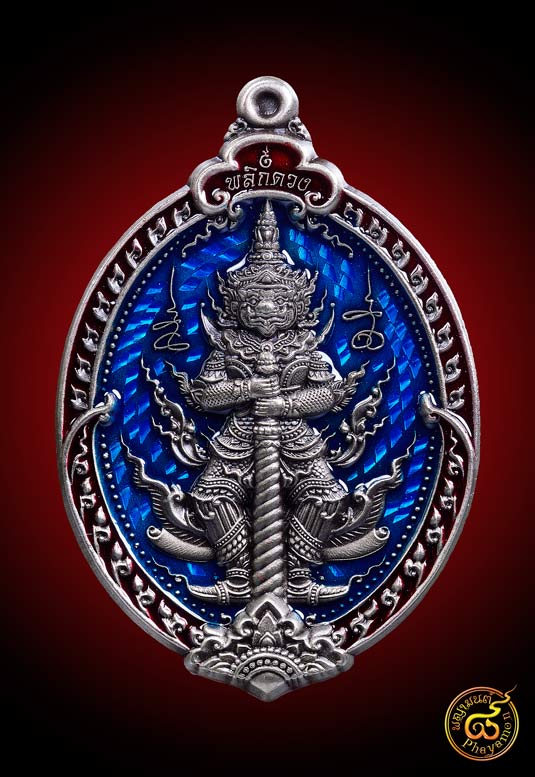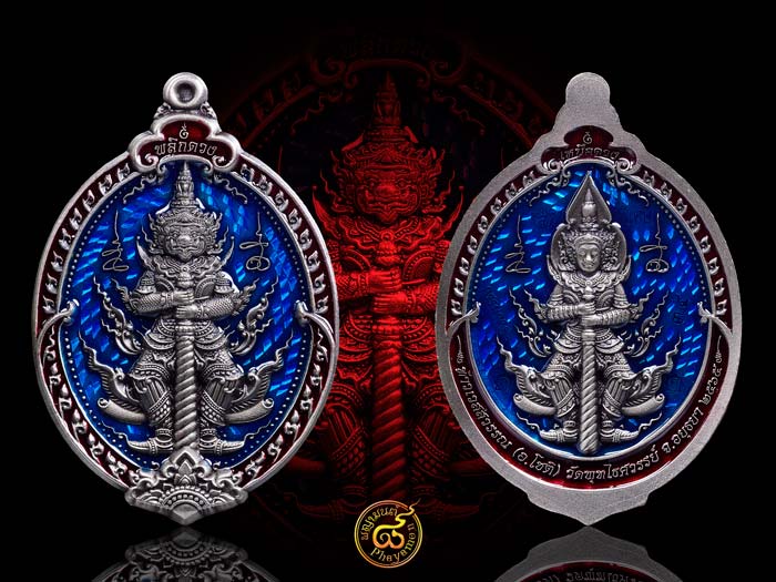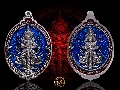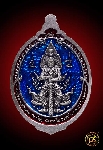 เหรียญท้าวเวสสุวรรณ รุ่นเหนือดวง พลิกดวง เนื้ออัลปาก้าซาติน ลงยาน้ำเงิน สองหน้า ชุดกรรมการ หมายเลข ๓๔