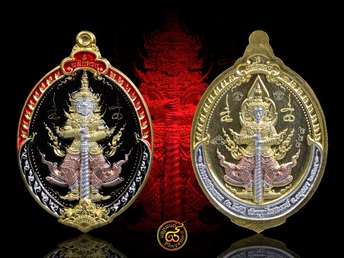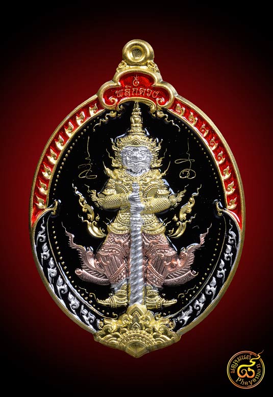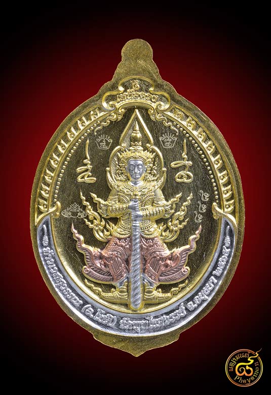 เหรียญท้าวเวสสุวรรณ รุ่นเหนือดวง พลิกดวง เนื้อชุบ 3K ลงยาดำ พิเศษตอกโค๊ตราหู หมายเลข ๘๘๘