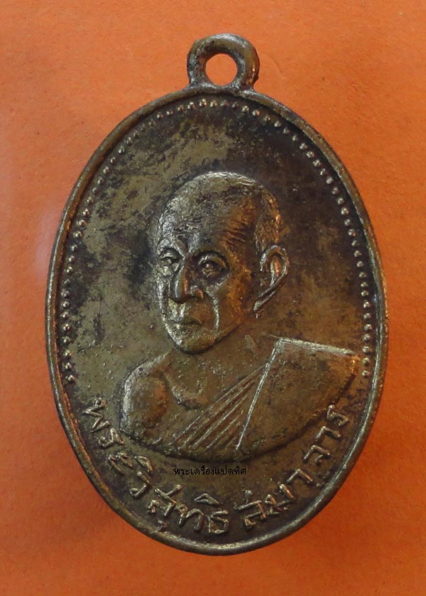 เหรียญพระวิสุทธิสมาจาร (เจ้าคุณศรี) วัดอ่างศิลา จ.ชลบุรี พ.ศ.2507 ข้อมูลประวัติ หลวงปู่ศรี วัดอ่างศิลา ชลบุรี พระวิสุทธิสมาจาร หรือที่นิยมเรียกและเป็นที่รู้จักกันโดยทั่วไปว่า ท่านเจ้าคุณศรี วัดอ่างศิลา อดีตเจ้าคณะจังหวัดชลบุรี และเจ้าอาวาสวัดอ่างศิลา ท่านเป็นพระเถรานุเถระผู้ทรงคุณ ทั้งด้านพระเวทย์วิทยาคม การพัฒนา การปกครอง จึงเป็นที่เคารพศรัทธาของพุทธศาสนิกชนทุกหมู่เหล่าทั้งใกล้ไกลตลอดมา ท่านมีนามเดิมว่า ศรี ยูถะสุนทร เกิดเมื่อวันที่ 28 เมษายน พ.ศ.2414 ตรงกับ วันศุกร์ ขึ้น 11 ค่ำ เดือน 6 ปีมะแม เวลาย่ำรุ่ง พื้นเพเป็นชาวตำบลอ่างศิลา อำเภอเมือง จังหวัดชลบุรี โดยกำเนิด เป็นบุตรของ นายทอง และนางเอี่ยง ยูถะสุนทร มีพี่น้องทั้งหมด 7 คน ท่านเป็นคนที่ 3 เมื่อเจริญวัยควรจะได้รับการศึกษา บิดามารดาได้นำไปฝาก พระครูสุวรรณาทร(เที่ยง จนฺทรํษี) ผู้เป็นหลวงลุงที่วัดอ่างศิลา ศึกษาทั้งอักขรสมัย มูลกัจจายณ์ จนสามารถอ่านออกเขียนได้ จึงกลับมาช่วยคอบครัวประกอบอาชีพ อุปสมบท เมื่อวันที่ 14 พฤษภาคม พ.ศ.2434 ตรงกับวันพฤหัสบดี ขึ้น 7 ค่ำ เดือน 6 ณ พัทธสีมาวัดอ่างศิลา มีพระอุปัชฌาย์ยิ้ม ติสสเทว วัดอ่างศิลาใน เป็นพระอุปัชฌาย์ พระอธิการแสง จารุวณฺโณ วัดอ่างศิลาใน เป็นพระกรรมวาจาจารย์ และพระครูสุวรรณาทร(เที่ยง จนฺทรํษี) เป็นพระอนุสาวนาจารย์ ได้รับนามฉายาว่า พรหมโชติ อยู่ปรนนิบัติรับใช้พระอุปัชฌาย์และพระอาจารย์ทั้งสอง ตลอดจนศึกษาพระธรรมวินัย ตลอดจนพุทธาคม วิปัสสนากัมมัฏฐาน และการทำผงทั้งห้า รวมถึงกสิณทั้งสิบ อักขรเลขยันต์ โหราศาสตร์ แพทย์แผนโบราณ ท่านเป็นผู้สมถเรียบง่าย เคร่งครัดในพระธรรมวินัย โอภาปราศัยไพเราะ จึงได้รับความไว้วางใจจากคณะสงฆ์แต่งตั้งให้ดำรงตำแหน่งต่างๆ ตลอดจนได้รับพระราชทานสมณศักดิ์ คือ - พ.ศ.2449 รักษาการเจ้าอาวาสวัดอ่างศิลาใน - พ.ศ.2454 เป็นเจ้าอาวาสวัดอ่างศิลาใน และเป็นพระอุปัชฌาย์ - พ.ศ.2456 เป็นเจ้าคณะอำเภอเมือง และได้รับพระราชทานสมณศักดิ์ที่ พระครูสุนทรธรรมรส - พ.ศ.2459 ได้รับแต่งตั้งเป็น รองเจ้าคณะจังหวัดชลบุรี และเป็นเจ้าคณะอำเภอศรีราชา อีกตำแหน่งหนึ่ง - พ.ศ.2460 ได้รับแต่งตั้งเป็นครูสอนนักธรรมชั้นตรี โท เอก สำนักเรียนวัดอ่างศิลา เป็นกรรมการตรวจประโยคนักธรรม ตรี โท เอก สนามสอบจังหวัดชลบุรี - พ.ศ.2462 ได้รับแต่งตั้งเป็นกรรมการตรวจประโยคนักธรรม ตรี โท เอก สนามสอบมณฑลปราจีนบุรี - พ.ศ.2466 ได้รับแต่งตั้งเป็นกรรมการตรวจประโยคนักธรรม ตรี โท เอก สนามสอบสนามหลวง กรุงเทพฯ - พ.ศ.2476 ได้รับแต่งตั้งเป็น เจ้าคณะอำเภอบางลุมุง อีกตำแหน่งหนึ่ง - พ.