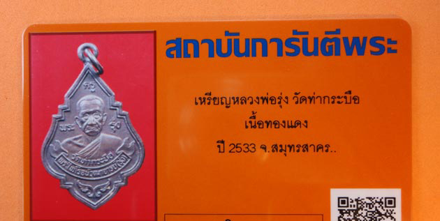 เหรียญหลวงพ่อรุ่ง วัดท่ากระบือ นิยม พ.ศ.2533 จ.สมุทรสาคร เนื้อทองแดง สภาพสวย พร้อมบัตรการันตี
